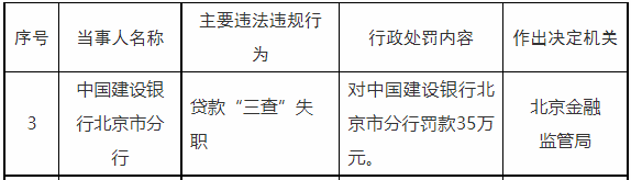 中国经济网络北京9月 - 9月-27次形成的行政处罚信息,揭示了国家金融监督网站北京监管局的信息,显示中国建筑银行北京银行贷款的“三项支票”忽略了其职责。北京金融监管局正在惩罚中国建筑银行北京分支机构350,000元。